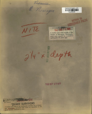 Managua, Nicaragua - Mother and child in the earthquake-stricken city of Managua presented this scene today as casualties mounted in the latest reports. A mother and child in the earthquake stricken city of Managua, Nicaragua, presented this scene as casualties in the great temblor continued to rise.