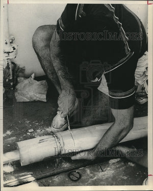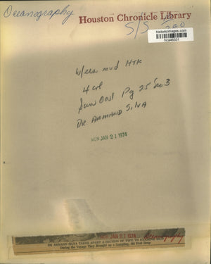 Dr. Armand Silva takes apart a section of pipe to examine mud. During the voyage they brought up a sampling, 104 feet deep. Oceanography.
