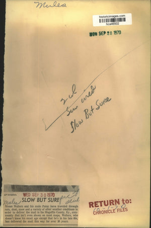 Moses Walters and his mule Patsy have traveled through rain, sleet, snow and a variety of other weather conditions in order to deliver the mail in the Magoffin County, Kentucky, community that isn't even shown on most maps. Walters, who doesn't know his exact age except that he's in his late 60s, has delivered the mail this way for over 30 years. Mules.