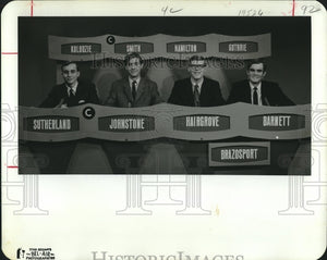 Brazosport High School is the latest to join that elite group of retired, unbeaten Prep Bowl champions in the Gulf coast area. By winning three straight matches on television, the team won $750 for the school. The team consists of, from left, Sam Sutherland III, 931 West 7th, Freeport; Harold Johnstone, 105 Sycamore, Lake Jackson; Robert Hairgrove, 116 Persimmon, Lake Jackson, and Jim Barnett, 520 Center Way, Lake Jackson. Prep Bowl is carried on KPRC-TV each Sunday evening. Houston, Texas.