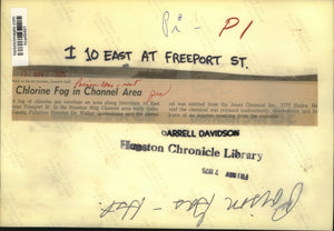 A fog of chlorine gas envelops an area along Interstate 10 East near Freeport St. in the Houston Ship Channel area early today. County Pollution Director Dr. Walter Quebedeaux said the chemical was emitted from the Jones Chemical Inc., 1777 Haden. He said the chemical was released inadvertently. Quebedeaux said he knew of no injuries resulting from the emission. Poison Gas - Houston, Texas.