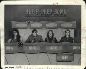 Frank Dobie High School of Pasadena became the third three-time winner of the season on Houston Lighting & Power Prep Bowl, the weekly televised quiz show. Dobie is now eligible to compete in the finals at the end of the school year. Members of the team, from the left, are Minerva Awwad, Lawrence Slocki, Carol Moore and Mack Sawyer. New Prep Bowl, Houston, Texas.