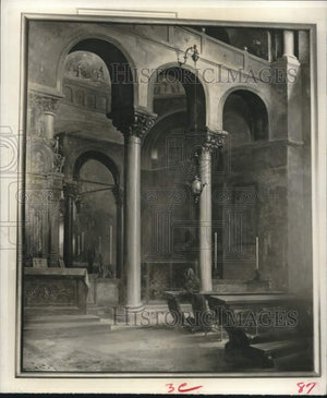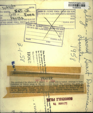 This painting of the interior of St. Mark's Cathedral in Venice hangs at the entrance to the dormitory at Sacred Heart Dominican College. "Prayer" was painted by Rudolph G. Guzzardi and the media used is walnut, although it looks like canvas. The painting was given to the college by Mr. and Mrs. George W. Strake, prominent lay leaders in the Catholic Church. College - Sacred Heart Dominican - Houston