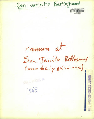 1963 Press Photo Cannon near picnic area at San Jacinto Battleground, Texas
