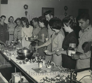It's chow-time at Fort Polk and the Houston girls line up with the servicemen. U.S.O. - Houston