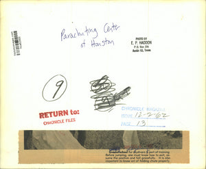 Parachuting Center of Houston...ground school for skydivers is part of training. Before jumping, one must know how to exit, assume the position and fall gracefully. It is also important to know art of folding chute properly.