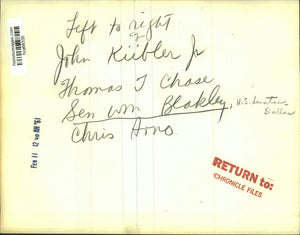 Left to right: John Kiibler, Jr., Thomas T. Chase, Senator W. M. Blakley, United States Senator-Dallas, and Chris Arno