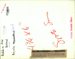 1978 Press Photo Bobbie Ann Boland Adjusts Her Bike Brake for Bike Marathon