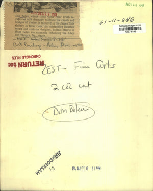 Don Bolen, whose facile water color brush recaptures with dramatic boldness the canals and bridges of Venice, is featured in the James Bute Gallery in River Oaks. An outstanding scenic and costume designer, Bolen's efforts in those fields are currently enhancing the Alley and Theatre, Inc. stages. Art paintings, Bolen, Don