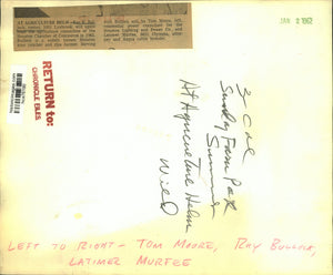At agriculture helm - Ray K. Bullock, center, 5301 Lynbrook, will again head the agriculture committee of the Houston Chamber of Commerce in 1962. Bullock is a widely known Houston area rancher and rice farmer. Serving with Bullock will be Tom Moore, left, residential power consultant for the Houston Lighting and Power Co., and Latimer Murfee, 3631 Olympia, attorney and Angus cattle breeder.