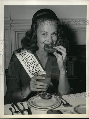1953 Press Photo Evelyn Margaret Ay, Miss America of 1954, at breakfast