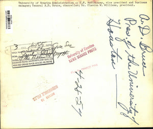 University of Houston Administration - C.F. McHinney, vice president and business manager; General A.D. Bruce, chancellor; Dr. Clanton W. Williams, president. Texas