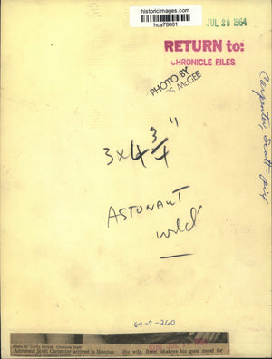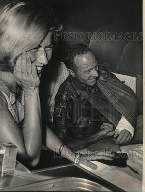 Astronaut Scott Carpenter arrived in Houston Saturday for further treatment. His wife, Rene, shares his good mood.