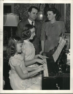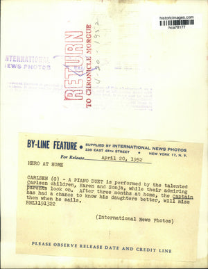 1952 Press Photo Karen & Sonja Carlsen perform a duet for Captain Carlsen