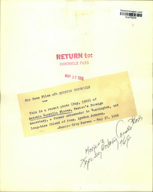 This is a recent photo (May, 1966) of Antonio Carrillo Flores, Mexico's foreign secretary, a former ambassador to Washington, and long-time friend of President Lyndon Johnson.