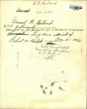 Daniel R. Bullard 2107 Belmeade President of the Fidelity Oil and Royalty Company. Long-time associate of Robert A. Welch. December 31-1953 D.R. Bullard