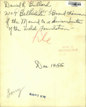Daniel R. Bullard - 2107 Bellmead. Board Chairman of the Mound Company and Senior Trustee of the Welch Foundation.