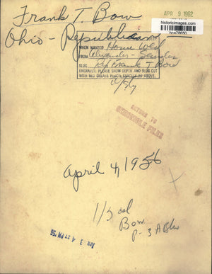 1956 Press Photo Frank T. Bow, Ohio Republican - hca78650
