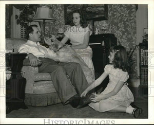 1952 Press Photo Hero, Carlsen at home with daughters Sonja and Karen