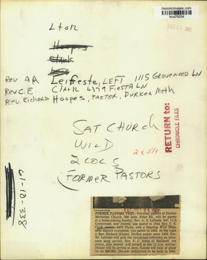 Previous pastors of Durkee Methodist Church, 506 John Alber Rd., will be guests at a home-coming Sunday. Rev. A. A. Leifeste, left, 1115 Grovewood, now retired, was pastor in 1954. Rev. C. E. Clark, center, 4379 Fiesta, now a Houston West Methodist district evangelist, was pastor in 1952. At the right is Rev. Richard Hoopes, Durkee pastor since 1959. Rev. Mr. Leifeste will give the devotional following an afternoon song service. Rev. S. C. Irwin of Malakoff, not shown, also retired, will preach at the 11 a.m. service. Dinner will be served at noon. Guests will hear of plans for an $80,000, 250-seat auditorium to be built in 1962.