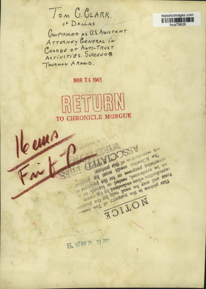 1943 Press Photo Tom C. Clark confirmed as US Assistant Attorney General