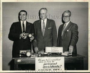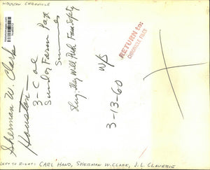 1960 Press Photo Carl Hand, Sherman Clark, JL Claverie pushing farm safety, TX