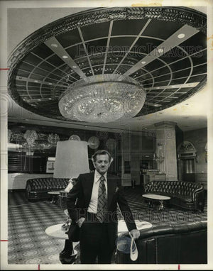 1975 Press Photo James Cazanas stands in Rice Hotel lobby - hca80369