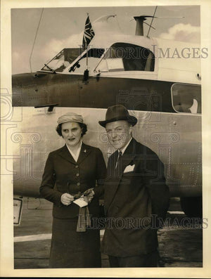 1956 Press Photo Sir Harold Caccia and wife in front of airplane - hca80597