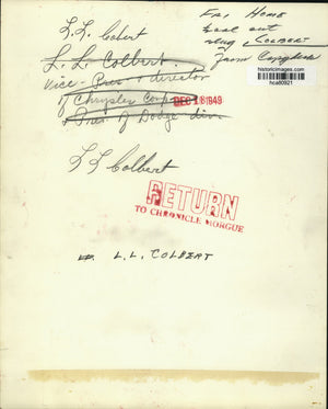 1949 Press Photo Lester L. Colbert, VP of Chrysler Corporation, Dodge