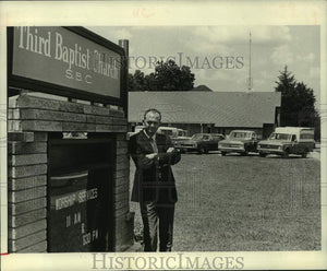1972 Press Photo Pastor Jesse R. Campbell Outside Third Baptist Church Sign