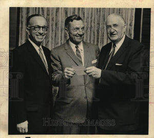 Houston Mayor Lewis Cutrer, center, receives tickets from J. Sayles Leach, chairman of the advisory committee, for Houston's mammoth telethon, to be staged here Saturday night and Sunday by all three major television stations. Bernard Sakowitz, left, is active in plans for the project, a 15-hour benefit to raise $250,000 for "The Eyes of Texas," a foundation for the blind here. The big show begins Saturday at 11 p.m.