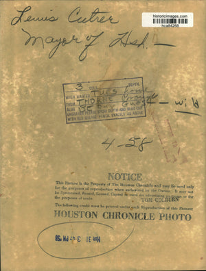 1958 Press Photo Houston Mayor Lewis Cutrer shakes hand with boy - hca84268