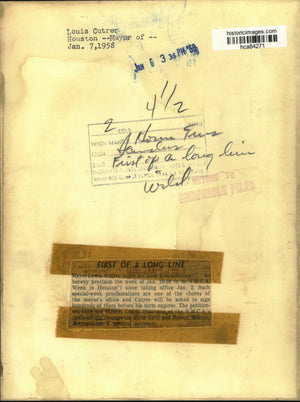Houston, TX: Mayor Lewis Cutrer signs his first proclamation ("do hereby proclaim the week of Jan. 19-26 to be YMCA Week in Houston") since taking office Jan. 2. Such special-week proclamations are one of the chores of the mayor's office and Cutrer will be asked to sign hundreds of them before his term expires. The petitioners here are Gilbert Leach, chairman of the YMCA's forthcoming countywide drive left, and Robert Malone, Metropolitan Y general secretary