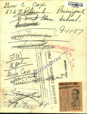 1957 Press Photo West University principal Gus C Cox also principal at Kolter-TX