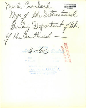 1960 Press Photo Bank of Southwest International Banking Manager Merle Crockard