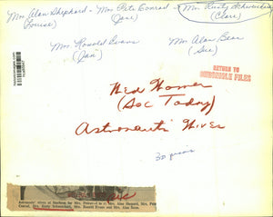 Astronauts' wives at luncheon for Mrs. Petrov (L to R) Mrs. Alan Shepard, Mrs. Pete Conrad, Mrs. Rusty Schweickart, Mrs. Ronald Evans and Mrs. Alan Bean. Houston