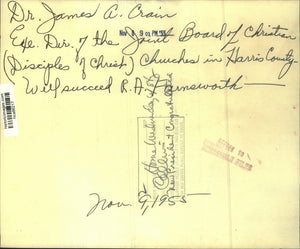 Dr. James A. Crain, Executive Director of the Joint Board of Christian (Disciples of Christ) Churches in Harris County, Texas. Will succeed R.A. Farnsworth.