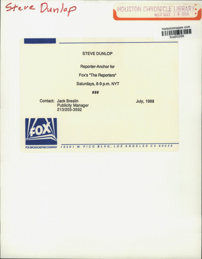Steve Dunlop - reporter anchor for Fox's "The Reporters" - Saturday, 8 - 9 p.m. NYT