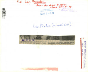 1991 Press Photo Lex Frieden in wheelchair with disabled boy scouts in Houston.
