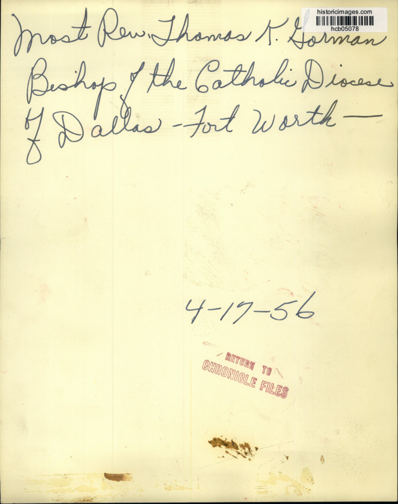 1956 Press Photo Reverend Thomas K Gorman, Bishop of the Catholic Diocese, Texas
