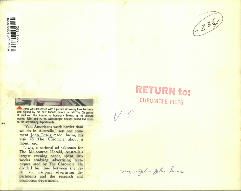 1966 Press Photo Australian John Lewis with H.W. Mossberger of the Chronicle