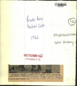 Psychological treatment is needed by the struggling "victim," who saw his buddy reduced to a bloody pulp. Brooke Army Medical Center - Medical Field Service School. San Antonio, Texas. Brooke Army Medical Center, San Antonio, Texas.