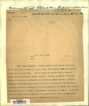 1960 Press Photo ROTC inspectors discuss University of Houston inspection