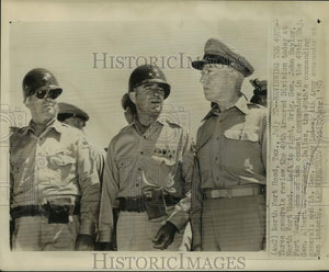 North Fort Hood, Texas - Three generals review the 49th Armored Division today at North Ft. Hood. Left to right,. Brigadier General (Brig. Gen.) John Naylor, Fort Worth, one of two combat commanders in the 49th; Major Gen (Major General) Albert S. Johnson, Dallas, the 49th commanding genera; and Lieutenant (Lt.) General Leroy Lutes, 4th Army commander and San Antonio.
