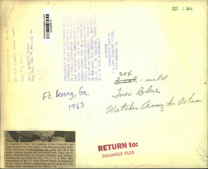 Dr. Kenneth S. Pitzer, left, president of Rice University, last week attended the Army phase of the 33rd joint civilian orientation conference at Fort Benning, Georgia, along with 150 of the nation's leading business and professional men. Pitzer saw infantry demonstrations and training firepower and mobility. Greeting him on arrival was Major General C. W. G. Rich, right, commandant of the United States (U.S.) Army Infantry School. In background is General John K. Waters, commanding general of the U.S. Continental Army Command at Fort Monroe, Virginia. Ft. Maj. Gen.