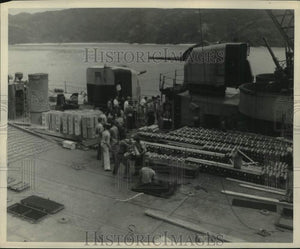 1948 Press Photo Crew, Weapons aboard USS Texas battleship - hcm00632
