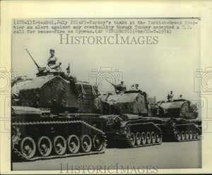 1974 Press Photo Turkey's tanks on alert at Turkish-Greek frontier; Istanbul