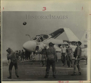1972 Press Photo Crew toss football on deck of USS Coral Sea, off Vietnam coast