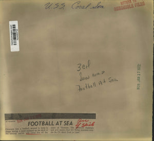 Football at sea. Crewmen toss a football around to keep in shape during a quiet moment on the deck of the aircraft carrier USS Coral Sea off the coast of Vietnam. The crewmen maintain and arm planes that are flying missions over the Ho Chi Minh Trail in Laos. Viet Nam. U.S.S.