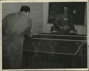 1961 Press Photo Cpts Frank Petty, William Moore play ping pong; Bergstrom AFB